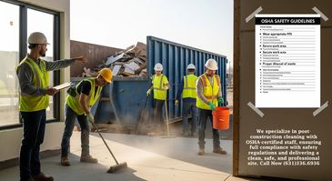 We specialize in post-construction cleaning with OSHA-certified staff, ensuring full compliance with safety regulations and delivering a clean, safe, and professional site.